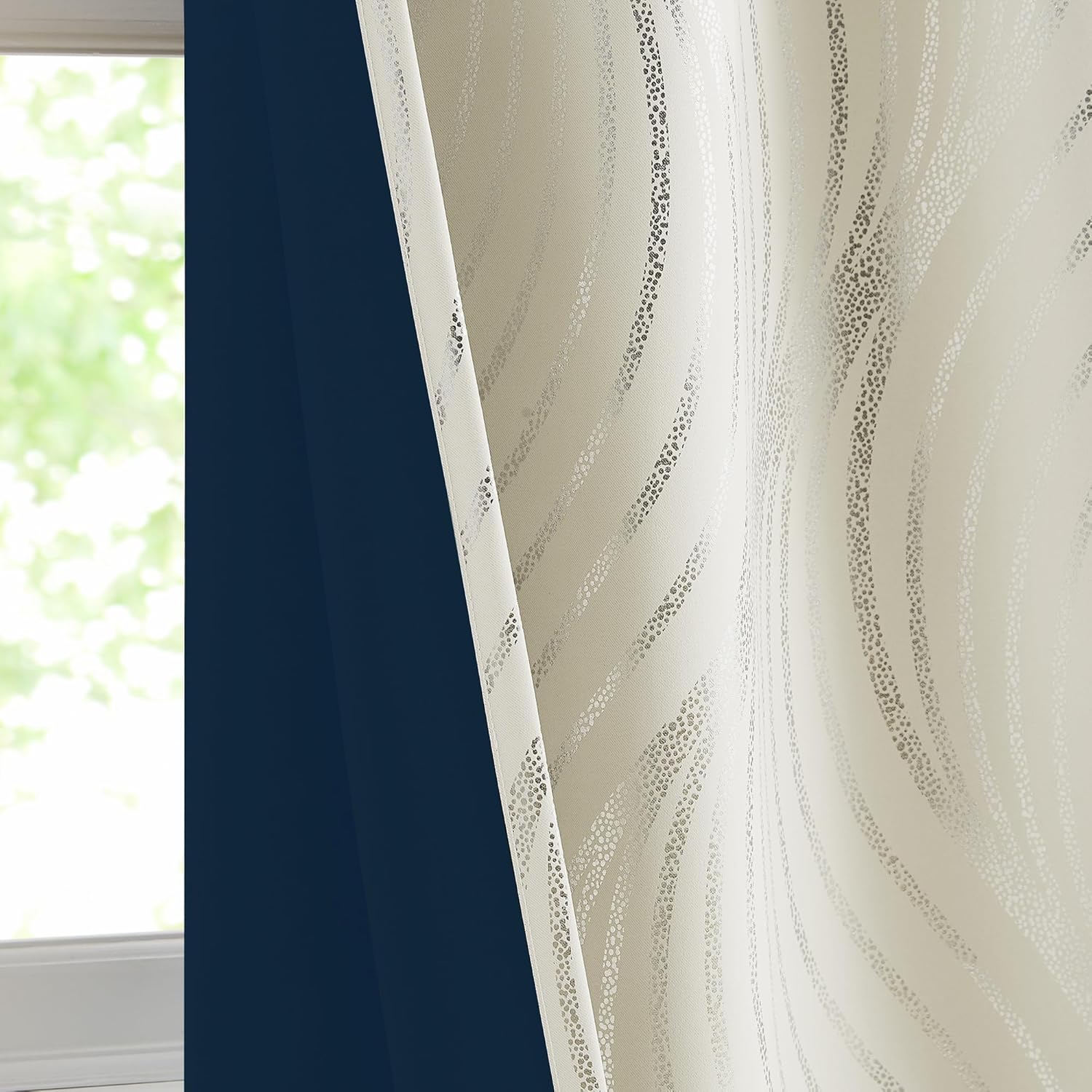 | Fabric Type | Silver Metallic Print With 100% Light Blocking Material |